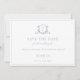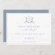 A vintagem elegante inspirou a adornada botânica, Dusty Blue Monogramas Crest, o casamento guarde a data. Recursos, uma elegante combinação de estilos de design de tipografia e tipo em negrito.