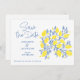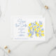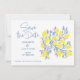Anuncie seu dia especial com uma explosão de frescura usando nossas Vinhas Lemon Salvem o Cartão de Data. Este cartão delicioso apresenta vibrantes vinhas azuis e amarelas de limão, acrescentando um toque inspirado no Mediterrâneo ao seu casamento. Informe seus convidados sobre sua próxima celebração de uma forma brilhante e revigorante.
