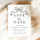 Anuncie o início de sua história de amor de eterno com nosso Arco Negra Elegance Vintage Salve a Data, um design maravilhosamente trabalhado com um impressionante arco artístico de linha negra e sotaques requintados de escrita de caligrafia com fundo branco. Esta estética elegante e clássica dá o tom para a sua próxima celebração sem a necessidade de uma foto. Meticulosamente projetada para complementar o tema do seu casamento, a simplicidade da paleta negra e branca melhora a sofisticação geral. Impresso na sua escolha de papel de qualidade, esta opção Salvar a data garante uma experiência luxuosa e tátil para seus convidados, criando antecipação por um dia que promete ser tão encantadora quanto seu amor. Deixe o Arco de Elegância Vintage Salvar a Data ser o primeiro vislumbre da elegância refinada que definirá seu dia especial.