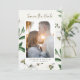 Anuncie sua data de casamento com este cartão de aviso de data personalizável. Apresenta flores brancas de aquarela e verde. Personalize esta foto, salve o anúncio da data adicionando uma foto e seus detalhes. Este cartão botânico para salvar a data é perfeito para qualquer época de casamento ou tema.