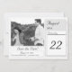 A data do seu casamento será lembrada com esta design! Design apresenta um plano de fundo maravilhoso da imagem de um local branco. A foto que você fornece é apresentada como design principal e aparecerá em preto e branco. A data do seu casamento é exibida como em um calendário em texto grande. O reverso apresenta a mesma aparência de local branco que o plano de fundo. design de excelente para o tema clássico da noiva "Old Money". Projetado para coordenar com a Vintage White Lace Católica Wedding Suite.