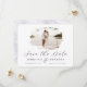 Frame violeta roxo e branco romeno escovado com Cartões salve a data fotográficos. Com a textura de mármore de luxo de volta, a elegante letra do Script de caligrafia e o slim line serif! Edite o seu hoje com seus nomes, data e foto! Veja meu compro para ver a suíte de casamento inteira para este design!