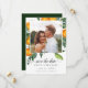 Elegante Citrus botanical save the dates apresenta uma foto de noivado quadrado favorita rodeada por um buquê de ramos vibrantes de mandarina cítricos e clementina, flor de marfim e folhas, "save the date" em letras de escrita de caligrafia, com seus nomes, data de casamento e local embaixo no tipo clássico de sereia de cinzas. Matizes vibrantes de folhagem verde, laranja tangerina brilhante e flores brancas macios para este esquema de cores fresco e harmonioso. O verso apresenta um fundo verde profundo. Perfeito para o casamento inspirado no mediterrâneo, casamento temático da Sicília e casamento botânico durante todo o ano. Essas designs podem ser personalizadas para sua ocasião especial e seriam perfeitas para seu casamento, chá de panela, festa de noivado, festa de aniversário e muitas outras ocasiões especiais. *** Para solicitação personalizada, escreva um email em citronelladesign@gmail.com.