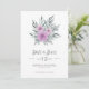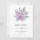 Um delicado e arejado buquê de flores de aquarela em tons pastéis, de lilás a rosa-orquídea junto com uma fonte "Salve a Data" que chama atenção, todos se juntam para fornecer um lembrete elegante aos convidados do casamento. O reverso tem nuvens de aquarela suaves em tons lilás correspondentes. Adicione seus nomes e data de casamento para o toque final. Procure ID654 para ver as outras peças neste conjunto de casamento completo.