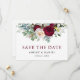 Moderno Elegante Watercolor Burgundy Floral Greenery Noivado Anúncio Casamento Salva O Cartão de Data inclui peões, folhas de eucalipto e outros belos verdes.