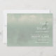 Este casamento moderno Salve o cartão da data é ligeiramente informal com um sentimento quente e pessoal e apresenta um abstrato, design de aquarela que se assemelha a reflexões sobre a água. Este exemplo tem uma paleta de cores de gradiente de creme pálido a verde de sábio suave. Personalize com o nome da noiva e do noivo, a data do casamento e os detalhes usando o modelo fornecido. Procure ID774 para ver o conjunto de correspondência completo e opções de cor adicionais.