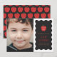 Celebrate your child's preschool graduation with this modern, charming graduation announcement. The front of the card features a sweet, halftone apple illustration with a "Class of (Year)" text overlay. Beneath the illustration is the message "the apple of our eye", as well as space for the name of your child and their school. The text and design is placed over a solid black background, with a playful, white wavy frame border. This announcement also includes space for a large customer photo. The back of the card features a coordinating halftone apple pattern.