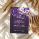 An elegant Wedding Anniversary Save the Date Card with elegant calligraphy completed by wonderful purple wood, garden string lights and white and purple watercolor garden floral. You can personalize this card with your pre-Wedding Anniversary details.
