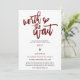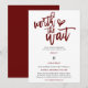 Porque quando as circunstâncias significam que infelizmente se tornou necessário que você mude a data do seu casamento, esta é uma maneira conveniente de deixar seus convidados saberem sua mudança de planos e nova data o mais rápido possível. Este design tipográfico tem um elegante roteiro de burgundy no topo Worth the Wait com um motivo cardíaco. O resto do texto que está numa mistura de burgundy e preto, você pode facilmente personalizar. As cores do texto e do plano de fundo em ambos os lados podem ser alteradas se você desejar por meio da opção Personalizar mais.
