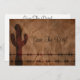 Este anúncio de salvamento ocidental apresenta um tema ocidental completo com cactus e barbed wire cerca. Perfeito para um casamento ocidental ou country!