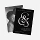 Este casamento preto único e moderno salve o cartão de data com uma cinza brilhante e corajosa e em fundo preto, com um layout de texto simples e criativo que certamente se destacará. Adicione sua foto pessoal favorita ao fundo.