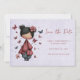 Save the date card with a cute fairy holding a butterfly wand. An adorable unique retro style doll with rosy cheeks. Butterflies flying all around.