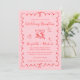 Trendy retro-inspired pink and red wedding reception save the date featuring a wavy frame adorned with coquette bows, whimsical hand drawn illustrations of a heart, stars and wine glasses, and "Wedding Reception" and the names of the bride and groom in a fun, playful script. Your photo fills the back of the announcement.