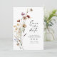 Este na moda e elegante White Boho Save The Date Flat Card apresenta lindíssimas flores silvestres de cor d'água pintadas manualmente, organizadas em um buquê adorável. Encontre itens correspondentes na Coleção de Casamentos de Flores Selvagens de Branca.