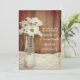 Anuncie sua próxima cerimônia de casamento rural casual de fazendas com as charmosas martinhas brancas no Casamento da Garrafa de Leite Salve os Anúncios de Data. O casamento do estilo rancho típico, rústico, conserva os cartões de data com uma fotografia floral fina de flores margaridas brancas numa garrafa de leite de vidro vintage com cebola branca e um fundo de madeira marrom. Inpo perfeito ou ideia para a cerimônia de casamento e tema de recepção do seu partido informal. Disponível como um convite impresso para envio por correio ou como um download digital para fácil compartilhamento digital online.