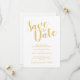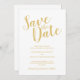 White Script Modern e Dourado Wedding Invitation Suite: Salve a Cartão de Data com título em fonte de script moderno dourado com detalhes de casamento em fonte de sans serif dourada e em fundo branco. Nota: Os detalhes da folha são simulados no trabalho de arte. Não será utilizada nenhuma folha de alumínio real no fazer deste produto.
