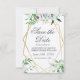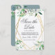 Este clássico Cartão Salvar a data de casamento apresenta flores azuis, cor-de-rosa e brancas, de cor-de-rosa, em um quadro duplo geométrico dourado que apresenta floreios botânicos e de bagas. Personalize esta opção Salve a data com suas próprias fontes ou mantenha esta tipografia popular como é para sua conveniência. MIx e combinar com outros itens nesta bela coleção de casamento.