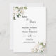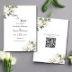 Um elegante magnólias floral branco com casamento verde salve a data com o código QR no verso.