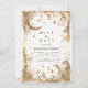 A luminous celestial wedding design glowing in soft white and metallic gold. This invitation features ornate swirling filigree, crescent moons, scattered stars, and shimmering celestial accents that create an ethereal, dream-filled atmosphere. The refined Art Nouveau frame adds a luxurious vintage touch, making it ideal for couples who want a romantic, moonlit, and enchanting celebration aesthetic.