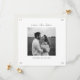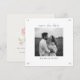 This chic white and ivory wedding save the date card features a striking couple photo at the front, typographical text and contemporary font. A lovely blush pink floral illustration is included at the back with additional text.
