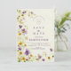 Celebrar o amor cercado pela beleza da natureza. Esta design apresenta flores silvestres delicadas em tons roxos, amarelos e ouros, criando uma moldura botânica romântica em papel texturizado. Com seu novo estilo de campo e charme vintage, é perfeito para casamentos de primavera ou verão, cerimônias de jardim rústicos ou celebrações do campo. Totalmente personalizável com seus detalhes para um eterno e toque pessoal.