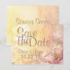 Sementeira de flores silvestres adoráveis Salve as aquarelas de data em cor rosa-de-quartzo-rosa, texto de café gelado e salpicos de amarelo ensolarado brilhante.