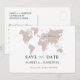 This DIY PRINTABLE wedding save the date template features a blush world map map and edgy handwritten font. Use this template to edit the fonts, font color, and background color to match your event needs. Move the heart and destination around to highlight your wedding location.