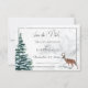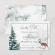As noivas de inverno vão adorar a sensação serena desta carta. Uma cena de inverno com veado e pinheiro rodeia o fundo da neve. O fundo carregar sobre o olhar de neve. Este cartão faz parte do Winter Wreath & Red Cardinal Wedding Suite of cards criado pela Simply Farmhouse Press.