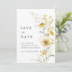 A romantic yellow sunflower and wildflower save the date card featuring soft watercolor florals in an elegant vertical botanical design. Warm golden-yellow blooms and delicate greenery create a natural, garden-inspired look that feels both timeless and modern.