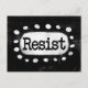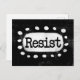 O texto em negrito com "Resistir" é centrado sobre um fundo preto. O texto preto se senta em um retângulo branco com grandes pontos brancos texturizados ao seu redor, fornecendo um contraste lúcido contra o plano de fundo de cor sólida.