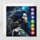 Arte pacífica de ai, representando uma linda mulher com cabelo soprando no vento e um bonito fundo etéreo azul celeste azul-celeste. Citação, "Respire e Libere." Bonito e iluminada arte espiritual chakras.