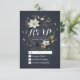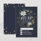 Modelo de Cartão de Resposta/RSVP de Casamento com Coroa Floral Preta, Branca e Dourada Elegante.