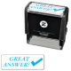 Este design de carimbo positivo apresenta a mensagem encorajadora "RESPOSTA AO EXCELENTE!". Ele também apresenta um ícone de marca de seleção decorativa. Ele poderia ser usado por um professor, educador, instrutor ou tutor ao marcar tarefas, para reconhecer que o aluno fez um trabalho de excelente.