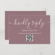 Um script de assinatura simples e elegante responde gentilmente a uma placa RSVP mauve com um código QR. Projetado por Thisnotme©