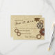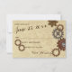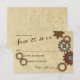 Cartão de resposta de casamento com design inspirado em steampunk com engrenagens industriais rústicas em tons de bronze, cobre e aço.