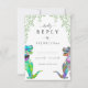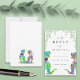 Se você e sua noiva amam dinossauros, então por que não celebrar seu amor de uma forma exclusivamente divertida e caprichosa com esta noiva botânica T-Rex e o cartão de convite de cerimônia de entrega do dinossauro do noivo? Apresentando uma coloração aquosa, pintada manualmente, de folhagem de eucalipto, esta design combina a beleza da natureza com uma reviravolta de dino divertida. A obra de arte original da artista Catherine Sweetman traz a adorável noiva e noiva de dinossauro colorida à vida, capturando perfeitamente o espírito do seu dia especial. O elegante roteiro de tipografia adiciona um toque sofisticado, fazer este cartão como o caminho perfeito para seus convidados para RSVP. É uma adição encantadora e memorável à sua coleção de papelaria de casamento que trará sorrisos a todos que a receberem.