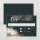 Um design de cartão de resposta de casamento exclusivamente elegante com luz e sombras sutis e elementos florais lindos que incluem tulipas duplas, bagas brancas e papoulas islandesas. A paleta de cores inclui flores bege com leves tons de rosa pálido e um fundo cinza ardósia profundo e luxuoso. Personalize o modelo de texto com a data de resposta necessária.