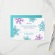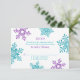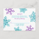 Você pode personalizar facilmente o texto neste simples cartão de resposta de casamento de inverno com flocos de neve turquesa (teal), roxo violeta e branco. Este design de cartão de resposta de RSVP de floco de neve de inverno tem um visual muito moderno com formas ousadas e cores elegantes. Roxo violeta e azul turquesa (teal).