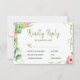Cartão de resposta de casamento com texto de caligrafia dourada editável, elegante, com opções de menu, apresentando rosas de jardim cor de rosa com folhagem verde-sage e folhas em fundo branco claro (editável). Ideal para o seu casamento temático de jardim ao ar livre, elegante e rústico, para a primavera verão | outono | campo elegante.