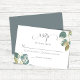 Este elegante cartão RSVP de casamento apresenta um charme botânico eterno com verde-aquarela macia e acentos de folhagem verde graciosa. Concebido como um cartão de resposta clássico, inclui espaço para os convidados aceitarem alegremente ou recusarem-se lamentavelmente, juntamente com uma seção de preenchimento de convidado simples para facilitar e clarificar. Perfeito para casais que buscam um toque simples, mas elegante, em sua papelaria de casamento, esta carta complementa lindamente qualquer tema inspirado na natureza.