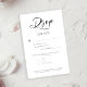 Um roteiro moderno e elegante de tipografia de escrita manual simples, preto e branco, convite de casamento do barato RSVP com opções de refeição. ++++++ Material de casamento correspondente disponível na coleção.