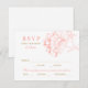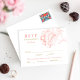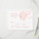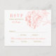 Um cartão-postal de RSVP lindamente projetado com ilustração de peônia coral e detalhes em dourado, com espaço para os convidados indicarem sua preferência de entrada. O layout inclui caixas de seleção para aceitar e lamentar, juntamente com opções de refeição de carne, frango e vegetariano. Todo o texto e opções de refeição são totalmente editáveis para se adequar ao menu da sua recepção.