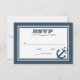 Cartão de resposta do tema náutico de azul marinho e juta para complementar o convite.