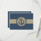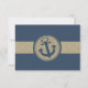Cartão de resposta com tema náutico de azul marinho e aniagem para complementar o convite.