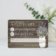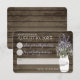 Cartão-resposta de lavanda e respirar fundo para complementar nosso conjunto de convites de casamento. Celeiro rústico do país de madeira e jarra de conserva cheia de flores de lavanda e respirar fundo.