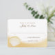 Cartão de resposta com a concha de ouro para elogiar nosso convite de casamento na praia. Personalize o texto como preferido.