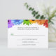 Uma variedade de flores nas cores do arco-íris faz uma bela moldura para este cartão de resposta de casamento do buquê arco-íris. Disias de vermelho a roxo destacam o cartão de resposta de casamento personalizável para ajudar a tornar seu casamento o mais único que pode ser! Perfeito para uma primavera ou qualquer casamento com temas arco-íris! Disponível com produtos correspondentes. com