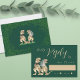 Cartão de cerimônia de resposta ao casamento do Dinossauro Botânico. Apresentando uma noiva e um noivo T-Rex divertidos com uma folhagem de eucalipto com aquarela, esta carta verde escura traz uma sensação única e caprichosa ao seu dia especial. A tipografia moderna no estilo caligráfico é divertida e fácil de personalizar, fazer simples de combinar com o estilo do seu casamento. Projetada pela talentosa Catherine Sweetman, a aquarela arte apresenta uma encantadora mistura de botânicos e amor inspirado em dino. Perfeito para sua recepção de casamento ou janto de ensaio, este cartão RSVP é parte de uma suíte de casamento completa que inclui tudo o que você precisa para fazer sua jornada de casamento tão memorável quanto sua história de amor.