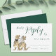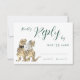 Cartão de cerimônia de resposta ao casamento do Dinossauro. Apresentando uma noiva e noiva T-Rex divertida com a carta de casamento elegante e verde escura, a RSVP traz uma sensação única e caprichosa para o seu dia especial. Escrita elegante no estilo caligrafia e tipografia moderna divertida e fácil de personalizar, fazer simples de combinar com seu estilo de casamento. Projetada pela artista Catherine Sweetman, a aquarela arte apresenta uma charmosa mistura de na moda e amor inspirado em dino. Perfeito para sua recepção de casamento ou janto de ensaio, este cartão RSVP é parte de uma suíte de casamento completa que inclui tudo o que você precisa para fazer sua jornada de casamento tão memorável quanto sua história de amor.