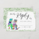 Cartão de cerimônia de resposta ao casamento do Dinossauro Botânico Colorido. Apresentando uma noiva psíquica divertida T-Rex e noiva com folhagem de eucalipto com aquarela, esta carta traz um toque único e caprichoso ao seu dia especial. A tipografia moderna no estilo caligráfico é divertida e fácil de personalizar, fazer simples de combinar com o estilo do seu casamento. Projetada pela talentosa Catherine Sweetman, a aquarela arte apresenta uma encantadora mistura de botânicos e amor inspirado em dino. Perfeito para sua recepção de casamento ou janto de ensaio, este cartão RSVP é parte de uma suíte de casamento completa que inclui tudo o que você precisa para fazer sua jornada de casamento tão memorável quanto sua história de amor.